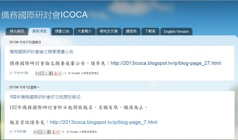 七、議程:請參考議程表及研討會網站公告,網址http://2013icoca.blogspot.tw