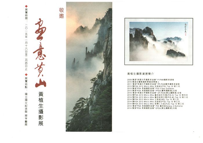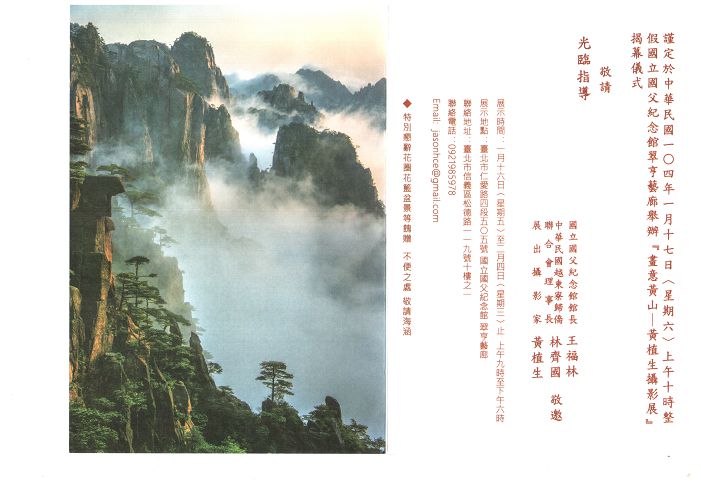 本會黃植生副理事長邀請大家參觀於中華民國104年1月17日(星期六)上午假國父紀念館翠亨藝廊舉辦『畫意黃山-黃植生攝影展』揭幕儀式
