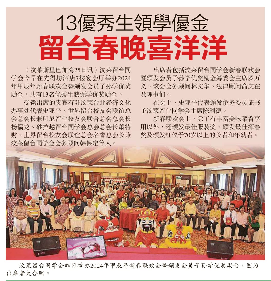適逢新春佳節,馬來西亞砂拉越美里分會留台同學會及汶萊留台同學會間隔一天各自舉辦團拜聯歡會活動,世聯楊儒龍總會長伉儷、翁其鴻秘書長及戴道聖文教組主任伉儷等5位應邀出席盛會。2月24日清晨6.15自印尼雅加達搭乘汶航直飛汶萊,飛抵後直接搭車駛往美里,在出來機場大廳出乎意料受到汶萊同學會多位理事的熱情接待,倍感驚喜,滿心溫馨。