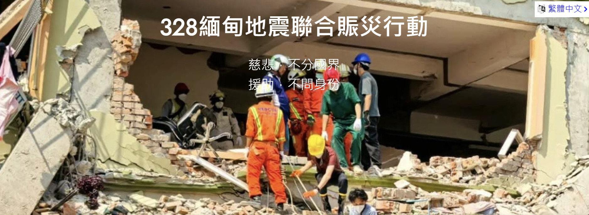 我們立即成立了「328緬甸地震聯合賑災行動」,並獲得國內許多善心團體熱情響應。在此誠摯期盼社會各界伸出援手,展現慈悲與善良。讓我們攜手同行,凝聚愛心力量,幫助災民度過難關,重建家園。
