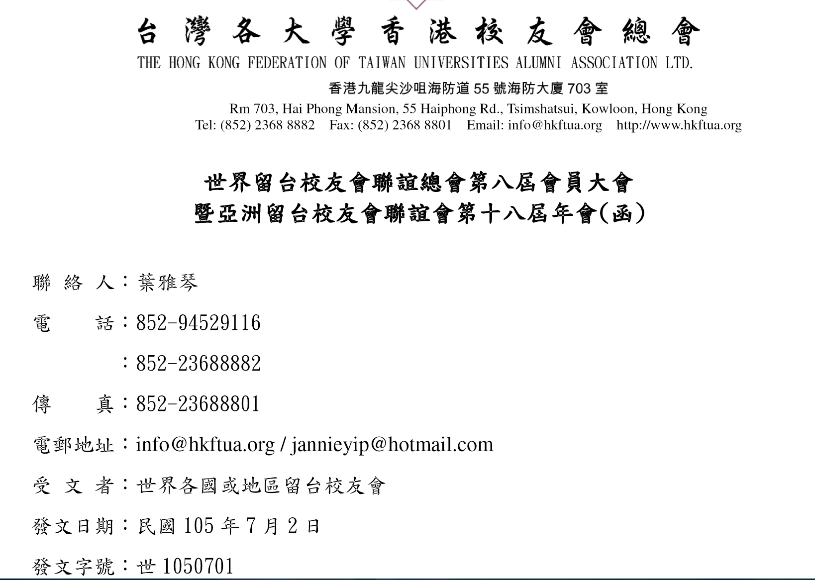 網站名稱:世界留台校友會聯誼總會 網址:https://wfotaa.ezsino.org