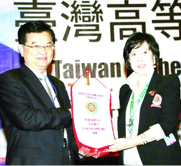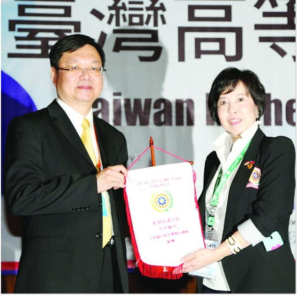 葉秀娟贈錦旗給蘇玉龍(海外聯招會主任委員,國立暨南大學校長)